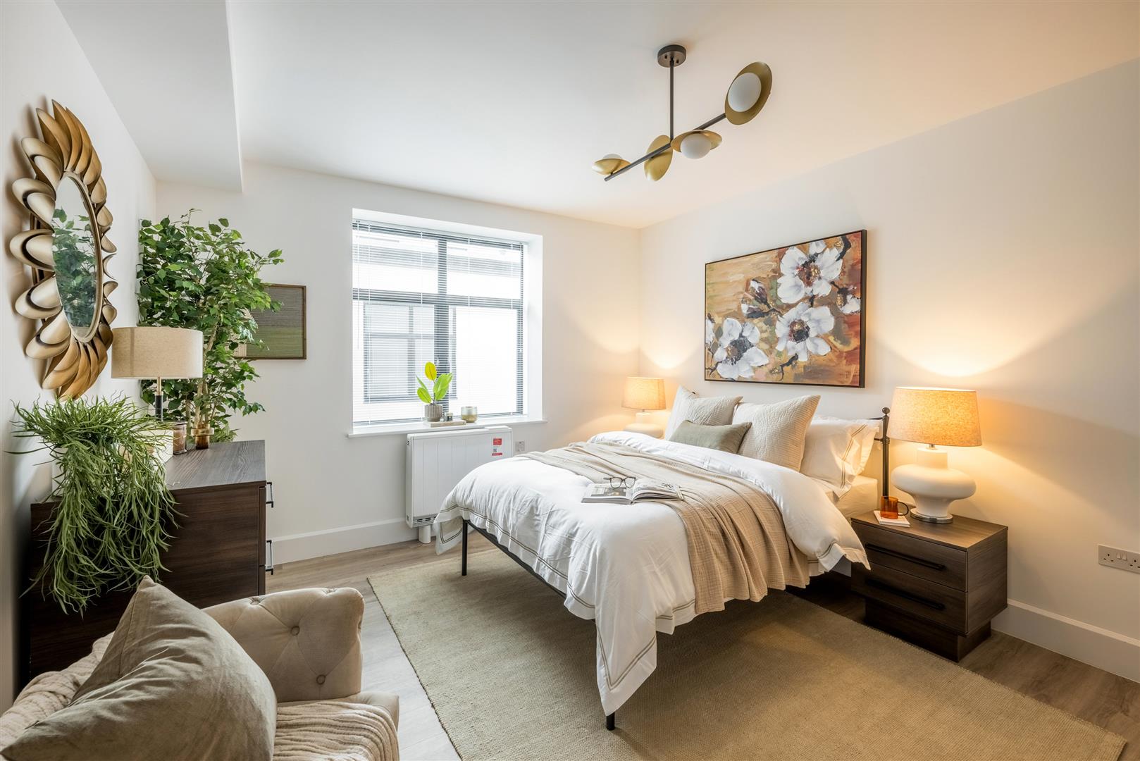 The flats are further enhanced by triple glazed Cortizo windows, which not only provide excellent insulation and a peaceful living environment but also flood the interiors with natural light, creating a warm and inviting atmosphere, the windows all have made to measure blinds.
