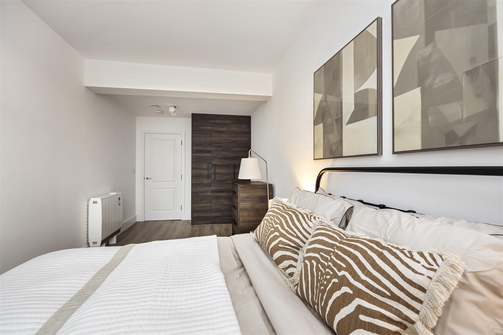 The flats are further enhanced by triple glazed Cortizo windows, which not only provide excellent insulation and a peaceful living environment but also flood the interiors with natural light, creating a warm and inviting atmosphere, the windows all have made to measure blinds.