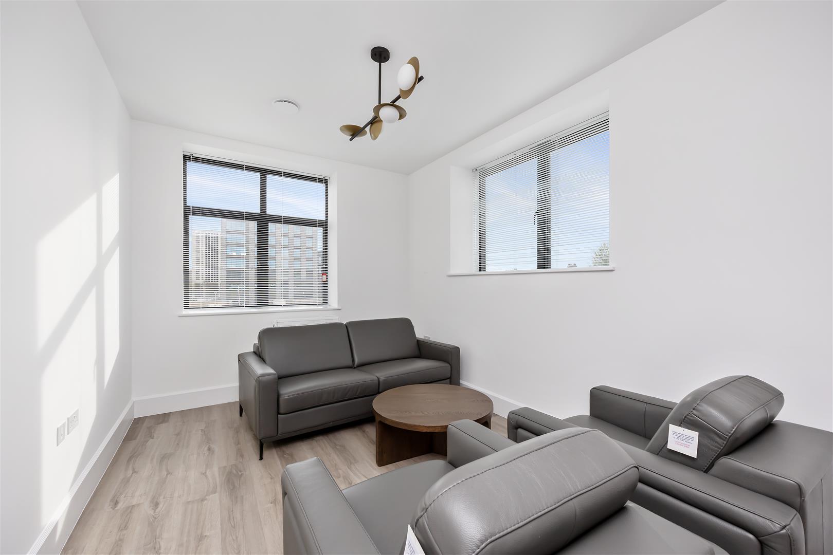 The flat is further enhanced by triple glazed Cortizo windows, which not only provide excellent insulation and a peaceful living environment but also flood the interiors with natural light, creating a warm and inviting atmosphere, the windows all have made to measure blinds.