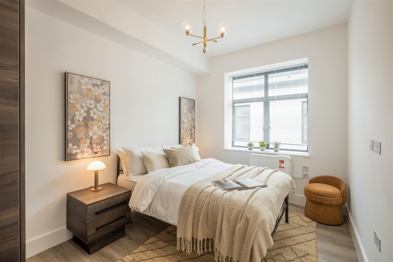 The flats are further enhanced by triple glazed Cortizo windows, which not only provide excellent insulation and a peaceful living environment but also flood the interiors with natural light, creating a warm and inviting atmosphere, the windows all have made to measure blinds.