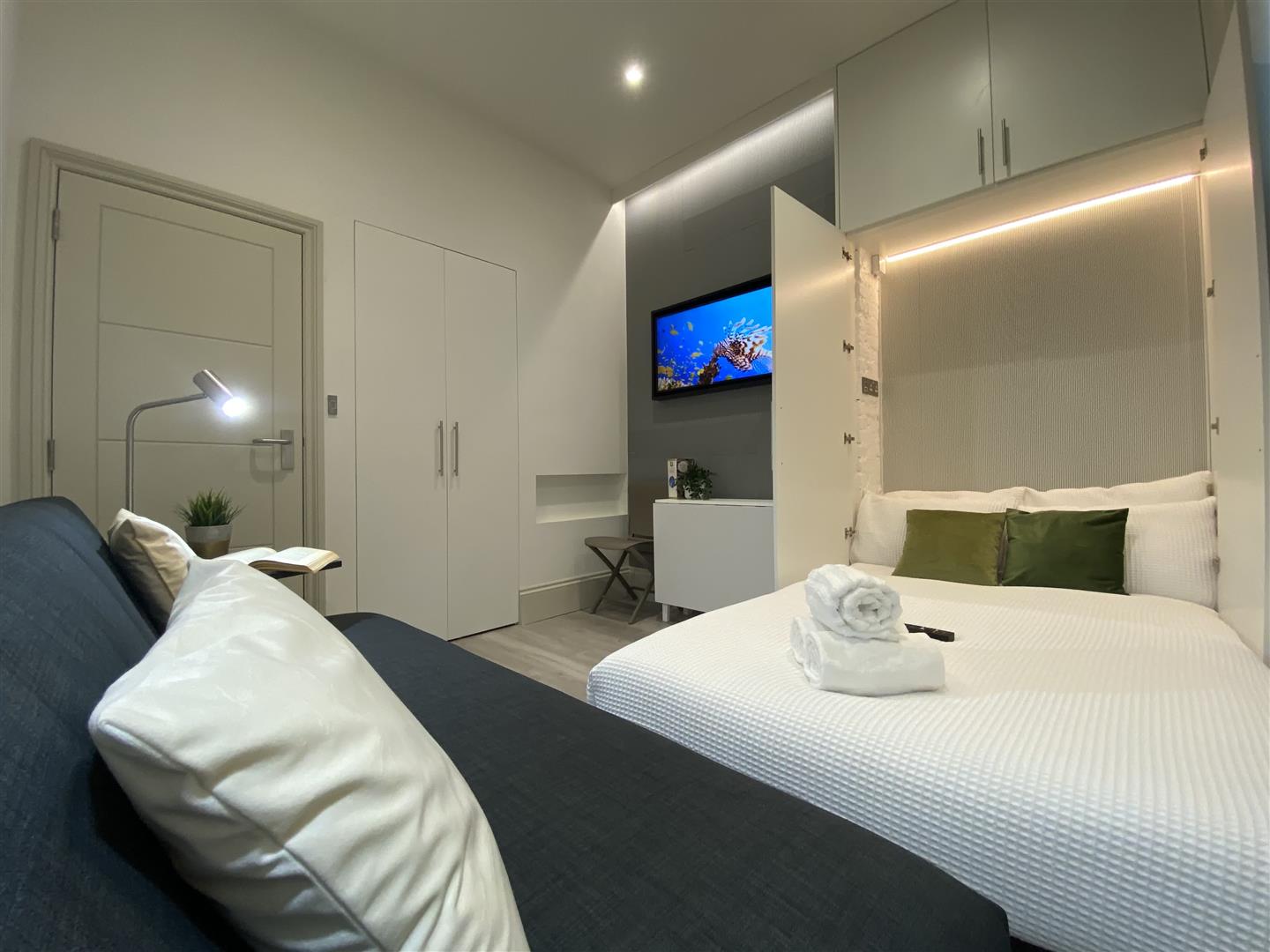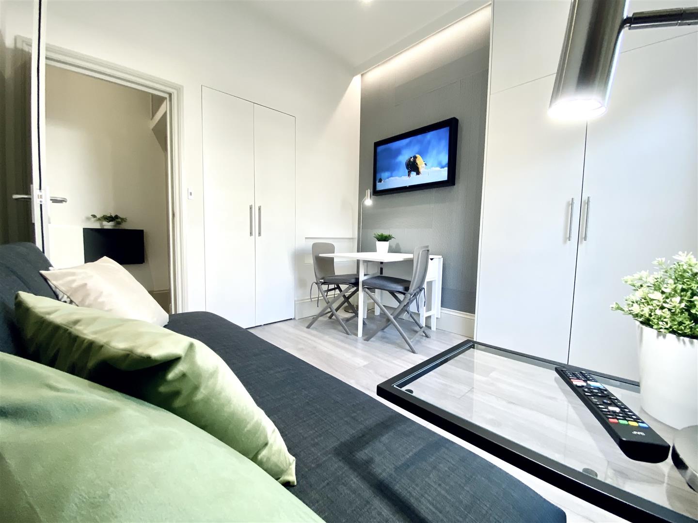A great size fully furnished room situated in central Hove, a stones throw from the seafront & Church Road and a short walk to Hove station. The room comes with all the furniture, a fold-away bed, small kitchen with sink, fridge & microwave and a modern en-suite. Gas Central Heating. Viewing Recommended.