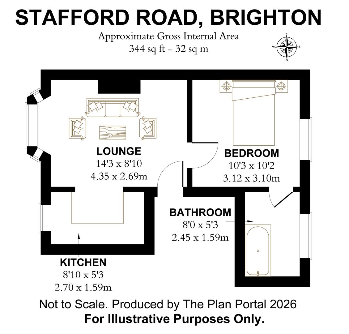 A fantastic one bedroom first floor flat situated on a quiet residential road in a popular location, a short walk to Seven Dials and Brighton station. The flat comprises a separate fitted kitchen, spacious living room, double bedroom and white bathroom suite. Electric Heating. Viewing Recommended.